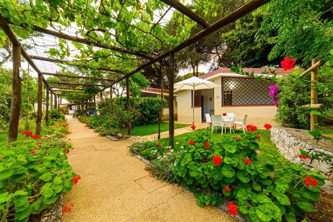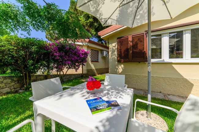 in muratura, fino a 4 tipologie, da 2 fino a massimo 4 posti letto. Sono dotati di aria condizionata, bagno con doccia bidet, phon e acqua calda, angolo cottura completamente attrezzato di stoviglie e utensili da cucina, giardino di pertinenza.