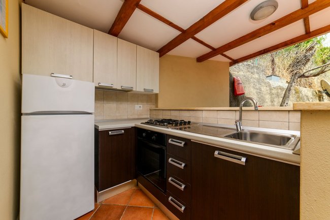 in muratura, monolocali e bilocali da 4 posti letto. Sono dotati di aria condizionata, bagno con doccia, bidet, phon e acqua calda, angolo cottura in patio completamente attrezzato di stoviglie e utensili da cucina.