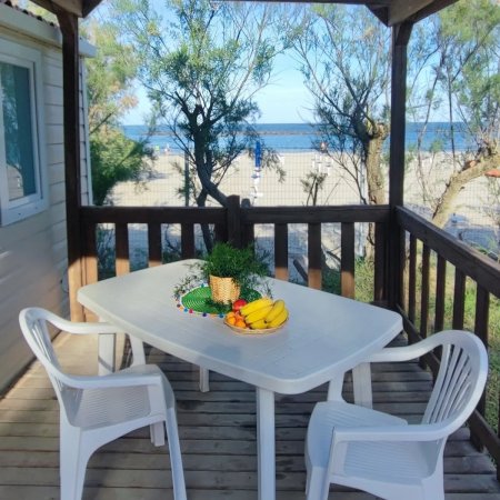 CASE MOBILI - alloggi fino a 6 posti  climatizzati ed immersi nel verde.  2 camere, un bagno, soggiorno con angolo cottura,  frigorifero, televisione e divano letto. Ampia veranda esterna. Non sono ammessi animali domestici