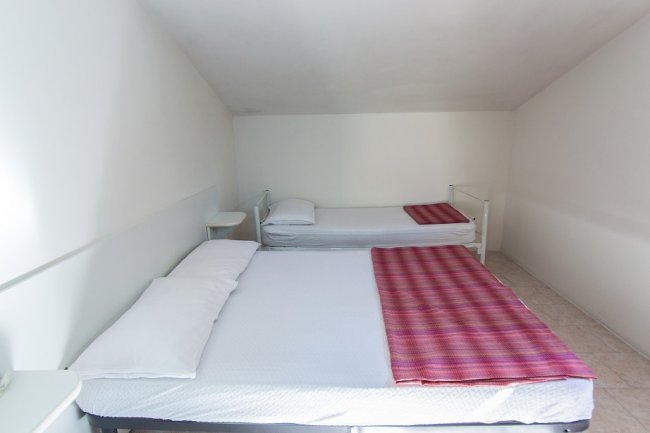 TRILOCALI 4 POSTI PRIMO PIANO: Questi appartamenti tipo residence si trovano al primo piano di una struttura su due livelli e vi si accede da una terrazza condivisa dai due bungalow. All’interno troverete una cucina, una camera matrimoniale, una camera con letto a castello e un bagno con doccia.