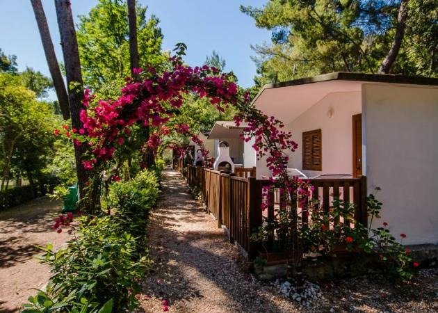 BUNGALOW IN MURATURA TRILOCALE 4 posti: Casetta in muratura indipendente con veranda attrezzata con tavolo e sedie e bbq in muratura - ingresso con parete attrezzata cucina, tv, tavolo e sedie - camera matrimoniale - camera doppia con letti singoli - servizi interni dotati di lavabo, wc, bidet o doccino bidet e ampia doccia con box in cristallo, asciugacapelli.Aria condizionata a richiesta. Struttura consigliata per famiglie/gruppo di 4 persone grazie alle due camerette separate. A richiesta il trilocale può ospitare fino ad un massimo di sei persone.Possibilità di aggiungere nell’ingresso una poltrona letto da richiudere al mattino o scegliere la seconda camera da letto quadrupla con 2 letti a castello.Alcune unità dispongono di giardino privato delimitato.