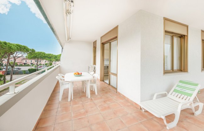 alloggi per 7/8 persone con soggiorno, cucina attrezzata, bagno con doccia, veranda con seconda cucina, aria condizionata, tv, biancheria da letto, cassaforte, parcheggio per 1 auto